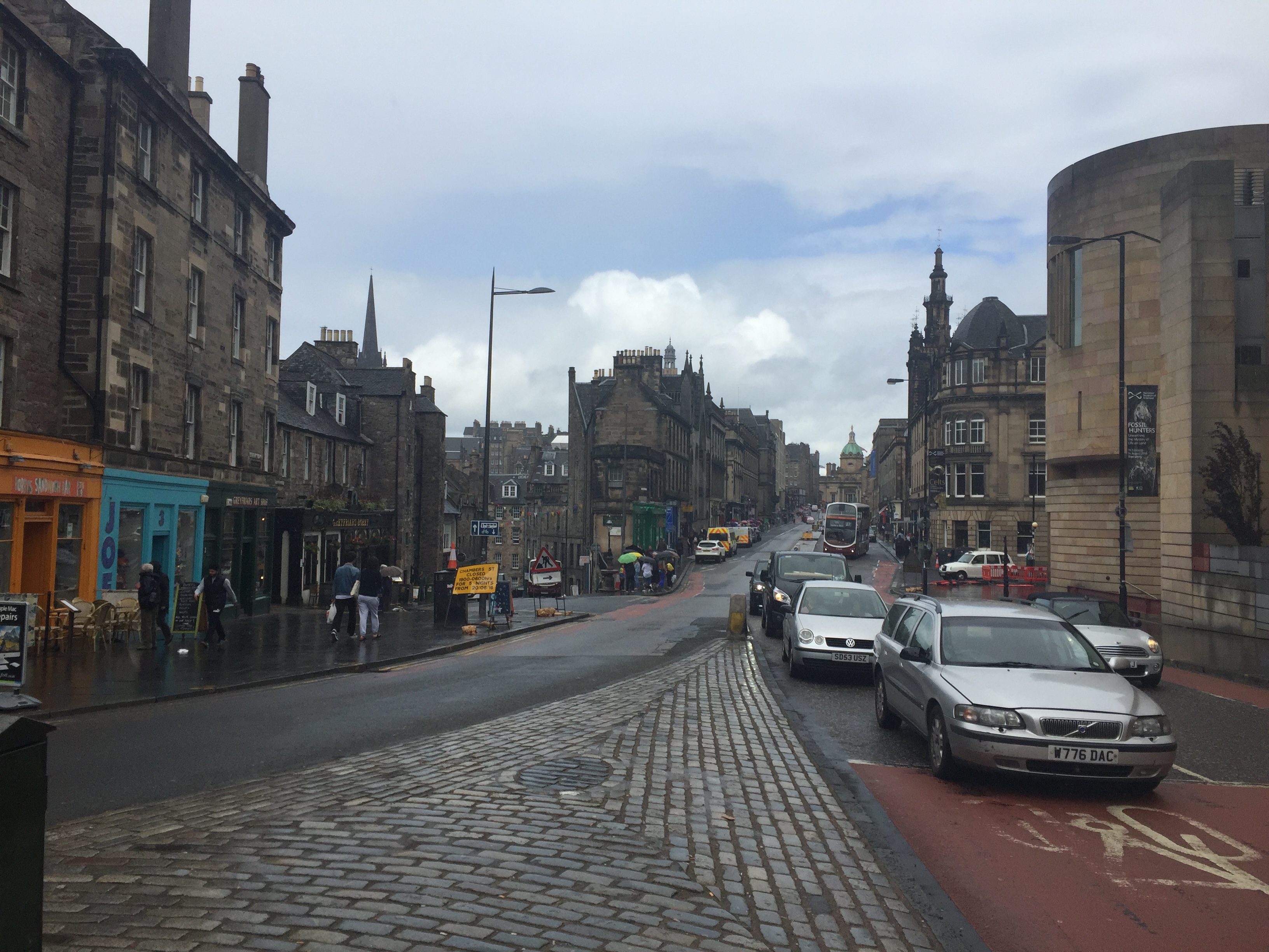 The Royal Mile in Edinburgh stretches up towards the Castle